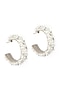 Featuring a pair of silver hoop earrings with glass beads, glass stone, pearl beads and metallic thread, set in brass. Perfect choice for festive celebrations, wedding or sangeet ceremonies.