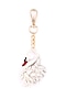 Featuring a white handcrafted swan bag charm with glass beads, nylon thread and suede backing, set in brass. Perfect choice for festive celebrations, wedding or sangeet ceremonies.