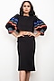 Featuring a black crop top in ponte roma base with puffed sleeves. It is paired with a matching bodycon skirt.
