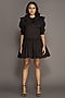 Featuring a black dress in cotton base with puffed sleeves and frilled bottom. It is paired with a matching detachable cutwork collar,