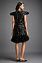 Featuring a black mini dress in net and vegan leather base with floral applique details, layered ruffled hem and structured tulle cap sleeves. It is paired with a slip. Style it with statement earrings and block heels, perfect for cocktail parties, evening soirees, or stylish dinner dates.