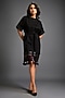 Featuring a black dress in ponte roma base with metallic pink geometric hemline. It is paired with a belt. Accentuate it with statement earrings and heels for an evening wear.