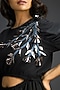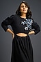 Featuring a black mini dress in ponte roma base with puffed sleeves, cut-out detail and floral embroidery. Accentuate it with statement earrings and heels for a brunch or an evening look.