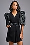 Featuring a black playsuit in roma base with a v-neckline and textured puff sleeves. It is paired with an embroidered belt. Accentuate it zircon earrings and stilettos for evening wear or cocktail party.