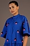 Blue Cotton Ruffled Zipper Dress