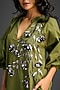 Green Cotton Metallic Floral Embroidered Mini Dress
