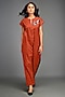 Featuring a rust jumpsuit in cotton base with cap sleeves, front zipper, side pockets and patchwork embellishments. Style it with black pumps and a sleek bun for an art gallery visit or a chic evening catch-up.
