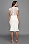 Featuring a white bodycon skirt in ponte roma base with side slit. It is paired with a matching bustier having patchwork.