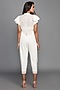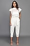 Featuring a white top in ponte roma base with cutwork detailing. It is paired with matching calf-length pants and a belt.