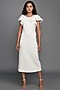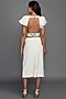 Featuring a white bodycon dress in ponte roma base with flared cap sleeves and neon detailing.