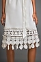 Featuring a white dress in ponte roma base with metallic silver geometric hemline. It is paired with a belt. Accentuate it with statement earrings and heels for an evening wear.