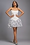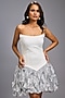 Featuring a white strapless dress in roma base with a structured bodice and ruched embroidered hem. Accentuate it zircon earrings and stilettos for evening wear or cocktail party.