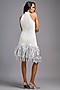Featuring a white tiered dress in roma base with a halter neck and embroidered ruffled hem. Accentuate it zircon earrings and stilettos for evening wear or cocktail party.