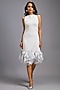 Featuring a white midi dress in roma base with a cut-out back and a tulle layered ruffled hem. Accentuate it zircon earrings and stilettos for evening wear or cocktail party.