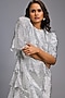 Featuring a white textured dress in roma base with a round neckline. Accentuate it zircon earrings and stilettos for evening wear or cocktail party.