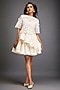 Featuring a white top in taffeta, net and vegan leather base with floral applique details. It is paired with a tiered ruffled skirt. Style it with statement earrings and block heels, perfect for cocktail parties, evening soirees, or stylish dinner dates.