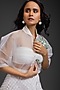 Featuring a white shirt in sheer organza base with embroidery. It is paired with a vegan leather sculpted skirt and a bustier. Accentuate it with stud earrings and heels for an evening wear.