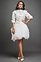 Featuring a white dress in vegan leather and sheer base with floral pattern and layered ruffle detailing. Accentuate it with statement earrings and heels for an evening wear.