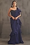 Navy Blue Georgette & Organza Ruffled Stitched Saree Set