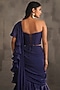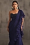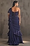 Featuring a navy blue stitched saree in georgette base with organza ruffles. It is paired with an organza corset having sequins, cutdana, stones and crystal embroidery. Accentuate it with jewellery and heels for a festive occasions or wedding ceremony.