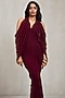 Featuring an aubergine draped gown in malai net base with cold shoulders, a deep halter neckline and pleated detail. Accentuate it with zirconia or swarovski jewellery, metallic heels and a leather clutch, a great choice for evening parties, formal dinners, and special occasions.