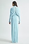 Deme by Gabriella features a mesmerizing Baby Blue Draped Dress that captivates with its elegance. The eye-catching piece is crafted in malai lycra and net with a high-neck and pleats detail. This designer dress is perfect for evening wear or cocktail party, showcasing style and sophistication.