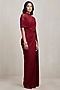 Featuring a burgundy gown in malai net base with a sculpted fold on the right side. Accentuate it with zirconia or swarovski jewellery, metallic heels and a leather clutch, a great choice for evening parties, formal dinners, and special occasions.