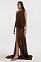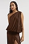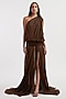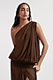 Deme by Gabriella presents a chocolate brown one-shoulder gown in chiffon base with ruched panel and a side slit. Accentuate it with statement earrings and heels for an evening look.