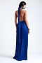 Deme by Gabriella presents an electric blue backless gown in chiffon base with a deep halter neckline. It is paired with a brooch. Accentuate it with statement earrings and heels for cocktail parties.