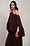 Featuring an espresso brown asymmetrical one-shoulder top in chiffon base with an exaggerated sleeves and gathered drop waist. It is paired with a high-low skirt. Accentuate it with zirconia or swarovski jewellery, metallic heels and a leather clutch, a great choice for evening parties, formal dinners, and special occasions.