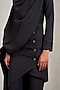 Featuring a grey asymmetrical top in wool suiting base with a sculpted drape detail across the neckline. It is paired with trousers, a detachable skirt and a detachable cape. Style with ankle boots and minimal silver jewellery for a sharp, contemporary edge, Ideal for evening parties, fashion-forward events, and upscale casual outings..