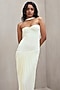Featuring an ivory strapless gown in malai base with a structured bodice, a choker neckline and pleated detail at the bottom. Accentuate it with zirconia or swarovski jewellery, metallic heels and a leather clutch, a great choice for evening parties, formal dinners, and special occasions.