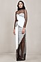Featuring an off-white and black sheer top in lace satin base with an angular cut-outs and full sleeves. It is paired with a maxi skirt. Accentuate it with zirconia or swarovski jewellery, metallic heels and a leather clutch, a great choice for evening parties, formal dinners, and special occasions.