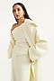 Deme by Gabriella presents an off-white trench coat in ferrari base. It is paired with an asymmetrical draped top having pleats, a side-cut and straight trousers. Accentuate it with statement earrings and heels for an evening look.