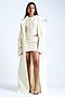 Deme by Gabriella presents an off-white top in leather base. It is paired with a mini skirt and a white ferrari oversized trench coat. Accentuate it with statement earrings and heels for an evening look.