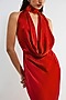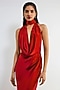 Featuring a red backless maxi dress in satin base with a deep cowl neck and drape detailing. Elevate your style with statement earrings and elegant heels for a glamorous look at any grand events or an formal affairs.