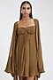 Featuring a sand green mini dress in chiffon base with a square neckline, a high-low hemline and balloon sleeves. Accentuate it with zircon earrings, stilettos and a clutch for evening soirees or cocktail parties.