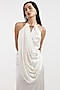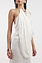 Featuring a white draped gown in satin base with a halter neck. Accentuate it with minimal jewellery and heels for a cocktail look.