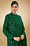 Featuring a green long kurta in georgette base with aari resham, pearls, sequins and swarovski crystal embroidery. It is paired with lycra net churidar pants and a silk organza dupatta. Accentuate it with delicate jewellery and embellished juttis for an elegant touch, perfect for festive gatherings, mehendi functions or evening celebrations.
