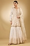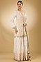 Featuring an off-white kurta in georgette base with aari resham, pearls, sequins and swarovski crystal embroidery. It is paired with gharara pants and a silk organza dupatta. Accentuate it with pearl jhumkas and embellished juttis for an elegant traditional look, perfect for weddings, festive gatherings and cultural celebrations.