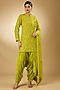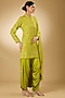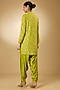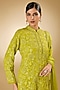 Featuring a parrot green short kurta in georgette base with aari resham, pearls, sequins and swarovski crystal embroidery. It is paired with modal satin tulip pants and a silk organza dupatta. Accentuate it with delicate jewellery and embellished juttis for an elegant touch, perfect for festive gatherings, mehendi function or evening celebrations.