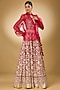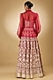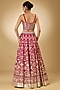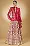 Featuring a pink lehenga in georgette base with aari resham, pearls, sequins and swarovski crystal embroidery, including tassel detail. It is paired with a chanderi corset having gota work and a silk organza shirt. Accentuate it with statement earrings and embellished heels for a modern regal look, perfect for weddings, receptions and festive evening celebrations.