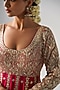 Featuring a pink kalidar anarkali in georgette base with gota work. It is paired with lycra net churidar pants and a silk organza dupatta. Accentuate with statement earrings, block heels and a sleek clutch for an effortless ethnic look, perfect for festive occasions or wedding ceremonies.