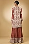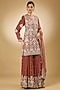 Featuring a rust kurta in georgette base with aari resham, pearls, sequins and swarovski crystal embroidery. It is paired with gharara pants and a silk organza dupatta. Accentuate it with pearl jhumkas and embellished juttis for an elegant traditional look, perfect for weddings, festive gatherings and cultural celebrations.