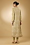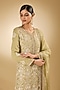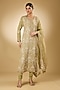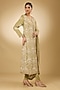Featuring a sage green kurta in georgette base with aari resham, pearls, sequins and swarovski crystal embroidery. It is paired with lycra net churidar pants and a silk organza dupatta. Accentuate it with delicate jewellery and embellished juttis for an elegant touch, perfect for festive gatherings, weddings and evening celebrations.