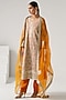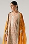 Featuring a yellow long kurta in georgette and modal santoon silk organza base with gota embroidery. It is paired with pants and a sheer silk organza dupatta. Accentuate with statement earrings, block heels and a sleek clutch for an effortless ethnic look, perfect for festive occasions or wedding ceremonies.