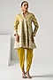 Featuring a yellow anarkali in georgette base with gota work. It is paired with modal santoon tulip pants. Accentuate with statement earrings, block heels and a sleek clutch for an effortless ethnic look, perfect for festive occasions or wedding ceremonies.