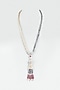 Featuring a cream and grey long necklace studded with zircon twisted pendant and crystals.
