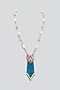 Featuring a rose gold finish pendant mala studded with crystal and baroque pearls, set in brass. Ideal for cocktail parties.