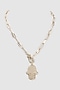 Featuring a white mala studded with american diamonds, set in brass. Ideal for cocktail parties.